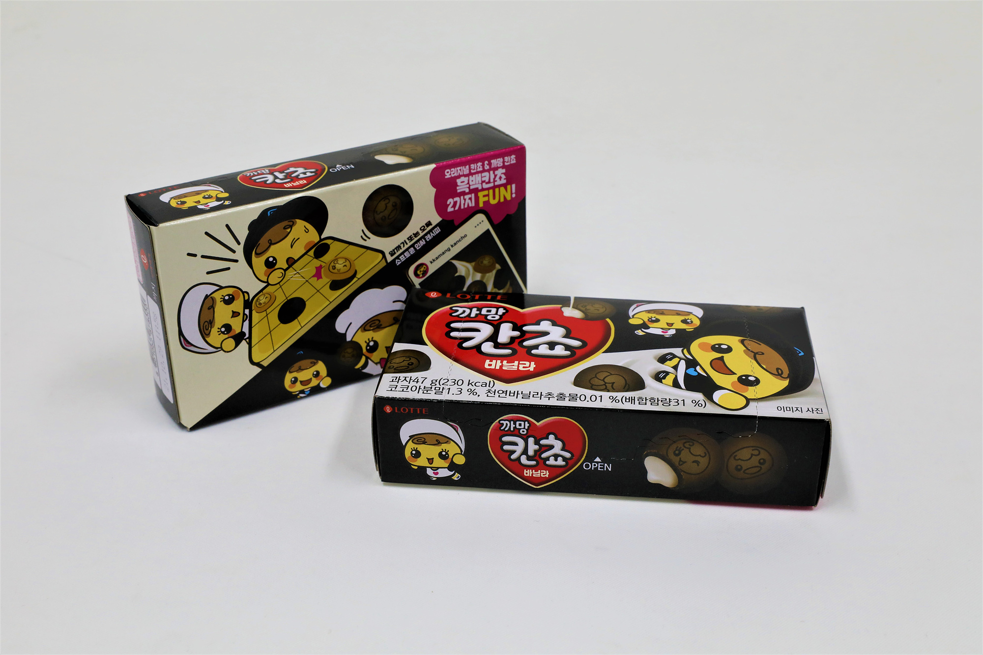 이번 제품 개발은 1983년 출시되어 올해로 만 37살을 맞은 칸쵸에 새로움을 더하기 위한 아이디어에서 비롯됐다. 칸쵸 특유의 동그란 모양이 바둑알을 연상시킨다는 점에 착안, 바둑알처럼 흰색과 검은색 2가지가 있으면 재미있겠다는 내부 의견이 반영되어 제품화 된 것이다. 이에 롯데제과는 제품 뒷면에 알까기 놀이 모습을 삽입하고 SNS를 통해서도 알까기를 소개할 예정이다.