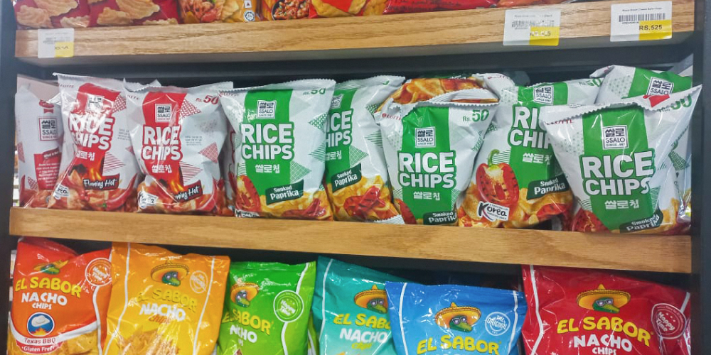 사진2_파키스탄에서 판매하는 '쌀로칩 플레이밍 핫', '쌀로칩 스모크드 파프리카'가 진열된 모습