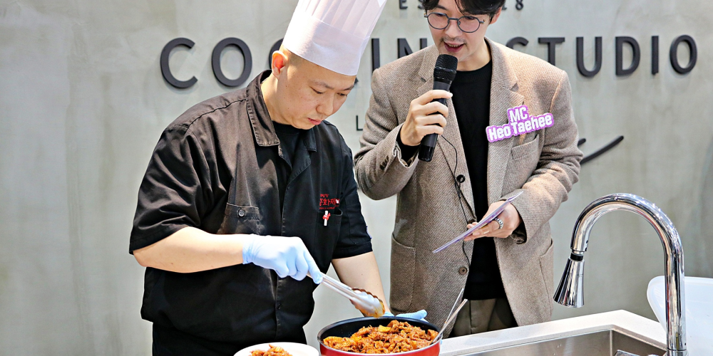 사진 2_’김주방장중화제육’ 김형찬 대표가 ‘효녀 심청 신제품 출시 프로젝트’ 최종 품평회에서 ‘중화제육두부덮밥&바오번’ 메뉴를 선보이고 있다.