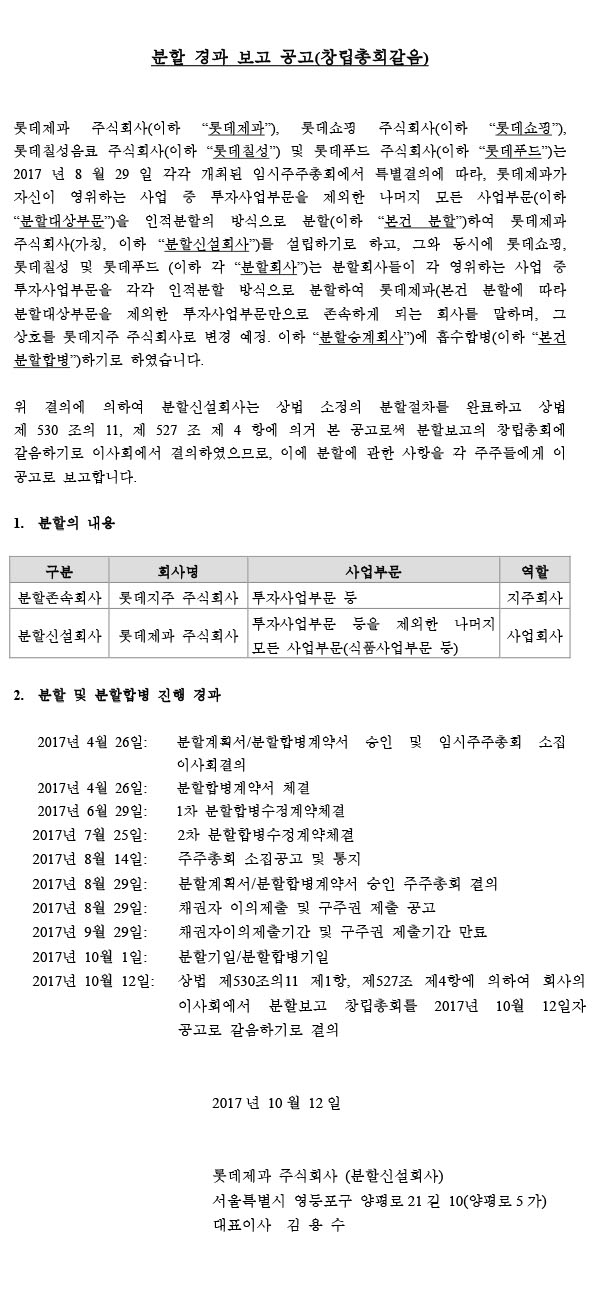 분할 경과 보고 공고