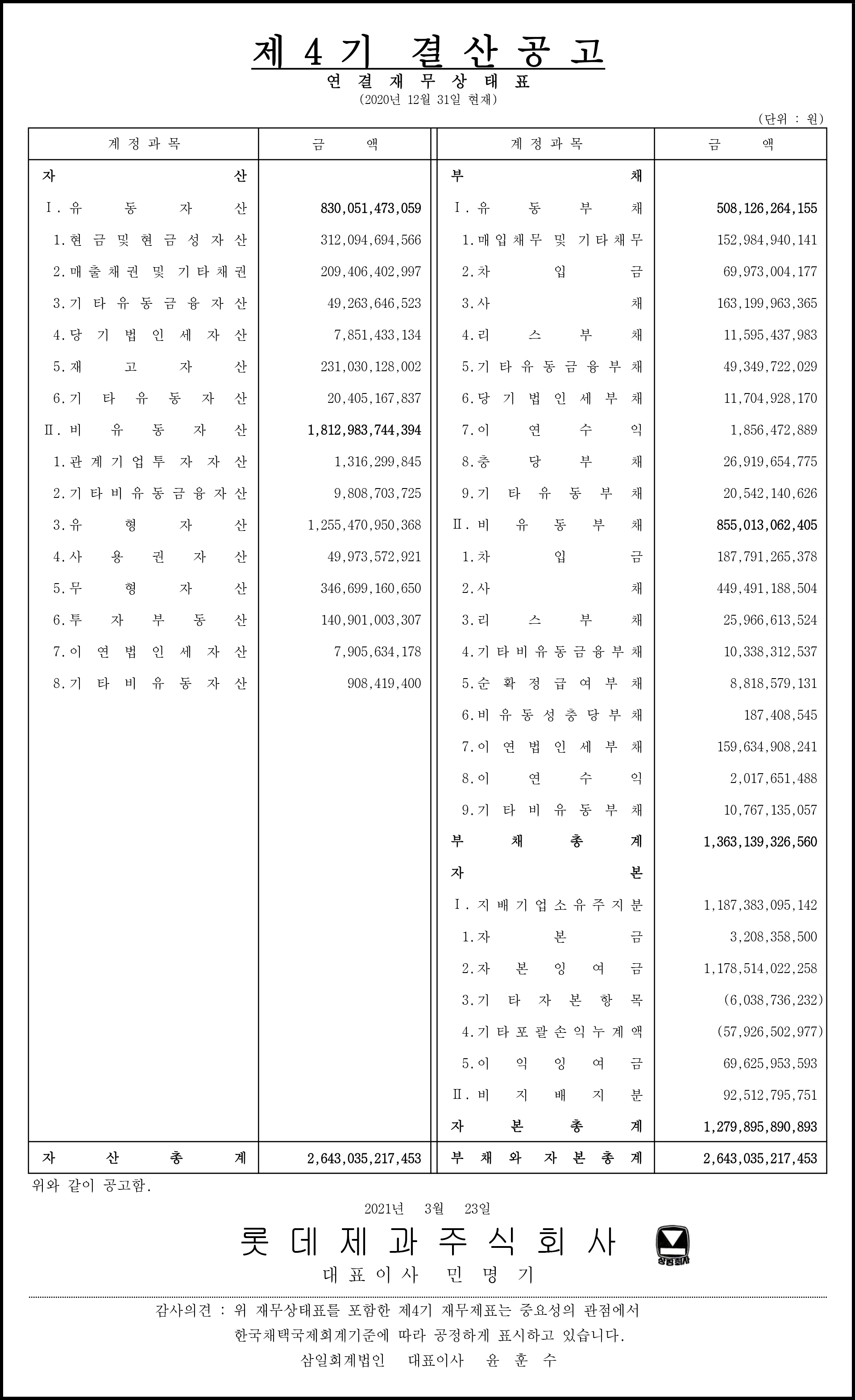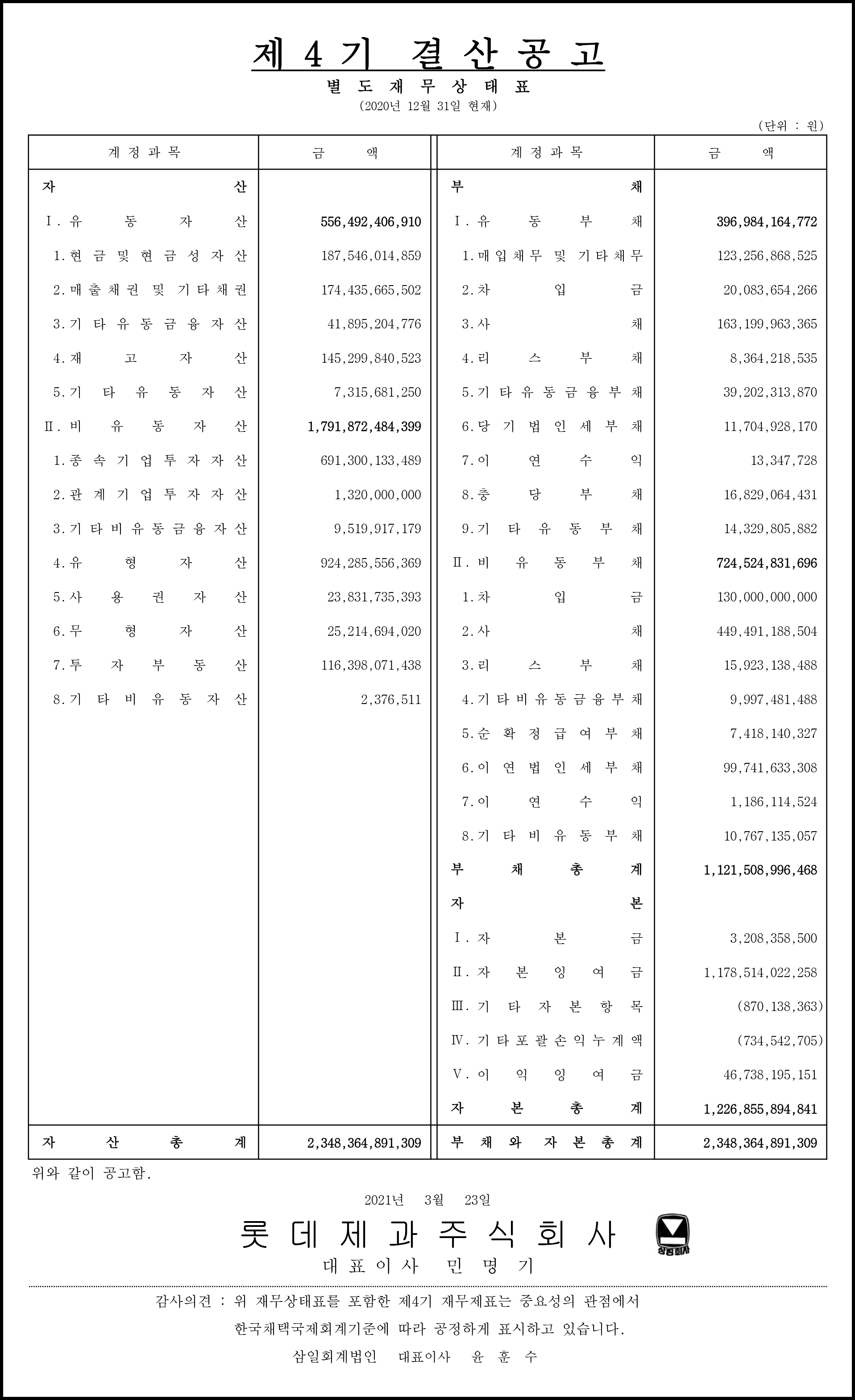 전자공고 < 전자공고및공시 < 투자정보 < 롯데웰푸드