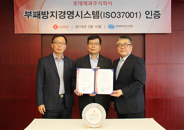 롯데제과가 국내 제과업계 최초로 국제표준 부패방지경영시스템 공인 인증기관인 한국컴플라이언스인증원으로부터 ISO37001 인증을 취득했다