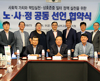 ‘노사정 공동선언 협약식’은 롯데제과 민명기 대표와 서울지방고용노동청 양승철 지청장, 롯데제과 김창수 노조위원장 등 노사정 관련 인사30여명이 참여한 가운데 19층 회의실에서 진행됐다.