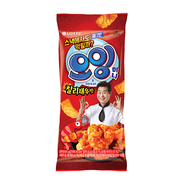 ‘오잉 미니 칠리새우맛’은 ‘스낵에서도 먹힐까?’라는 테마를 가지고 중식의 대가 이연복 셰프가 개발에 참여한 제품이다. 이 제품은 중식요리로 유명한 ‘칠리새우’의 맛을 제대로 살렸다.