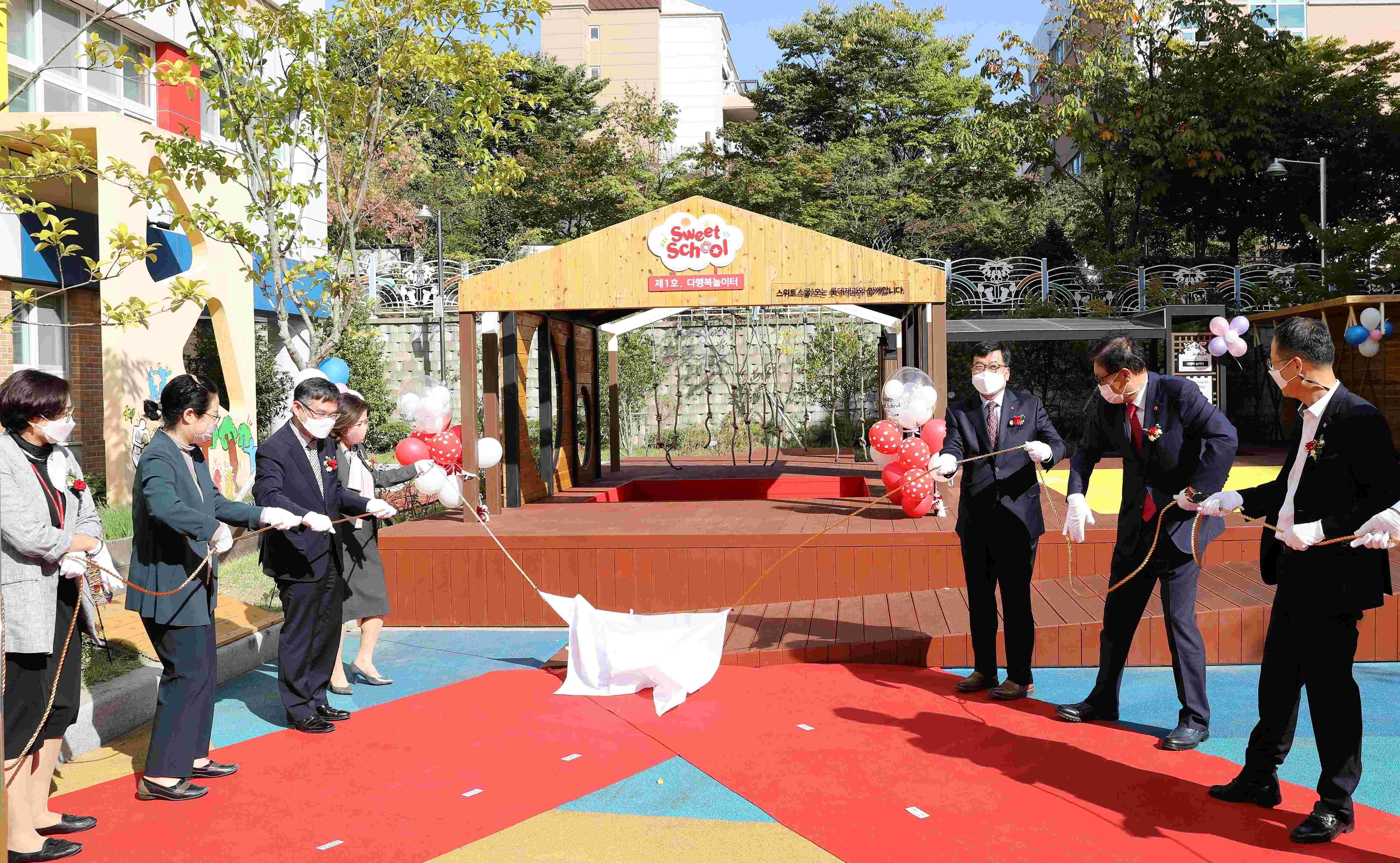 ‘스위트스쿨’ 사업은 빼빼로 판매 수익금으로 조성되며, 초등학교 내 놀이공간을 새롭게 구축하여 놀이문화 활성화를 돕고, 나아가 아이들의 놀 권리를 보장하자는 취지로 기획됐다. 1호 ‘스위트스쿨’은 방곡초등학교 내 공터 일부를 활용해 약 493㎡ 규모로 만들어졌다. 이번 ‘스위트스쿨’의 이름은 ‘다행복 놀이터’로, 방곡초등학교 학생들이 직접 이름을 지었다.