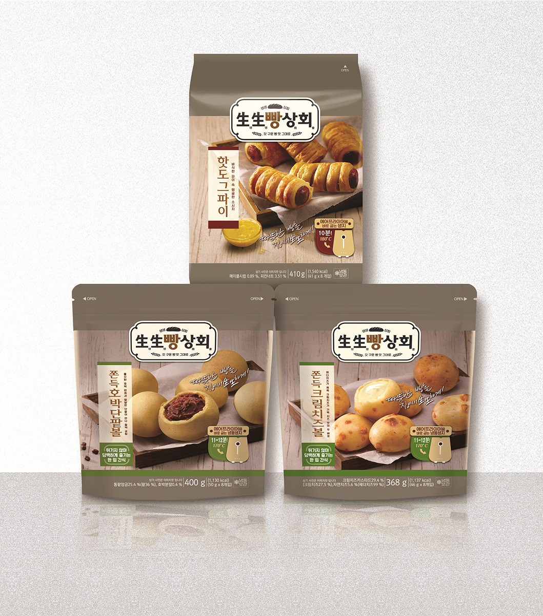 ‘생생빵상회 핫도그 파이’는 돈육 함량이 높은 소시지를 바삭한 파이로 감싸 식감이 톡특한 제품이다. ‘쫀득 크림 치즈볼’은 통상 기름에 튀겨내어 만들었던 치즈볼의 제조 방법과 달리, 체다치즈 반죽의 생지 형태를 굽는 방식으로 만들어 담백하면서 바삭한 식감이 좋다. 또 제품 속에 부드러운 크림치즈가 들어가 두 가지 치즈 풍미를 즐길 수 있다. ‘쫀득 호박 단팥볼’은 쫄깃한 타피오카 전분과 달콤한 호박 분말을 사용했고, 반죽 속에는 달달한 단팥이 들어가 있다. 이번 3종은 모두 별도의 해동 과정 없이 에어프라이어, 광파오븐 등에 10~15 분 동안 조리하면 된다.