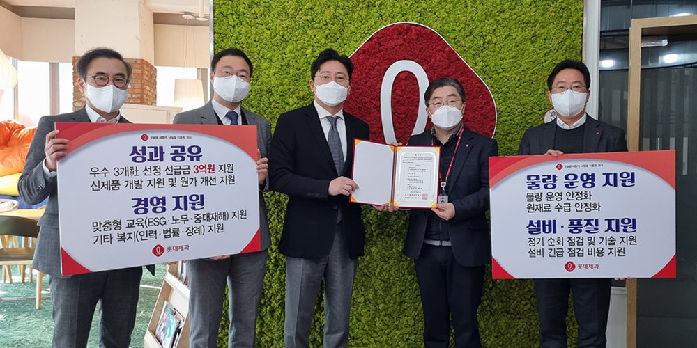 한편 롯데제과는 이달 10일 서울 양평동 본사에서 내부 임직원을 비롯해 주요 협력사 대표가 참석한 가운데 ‘파트너사 상생 지원 협약식’을 진행했다. 이번 행사는 코로나 상황을 감안해 최소한의 인원으로만 진행되었으며, 참석하지 못한 협력사 대표에게는 영상매체 전달로 대신했다.